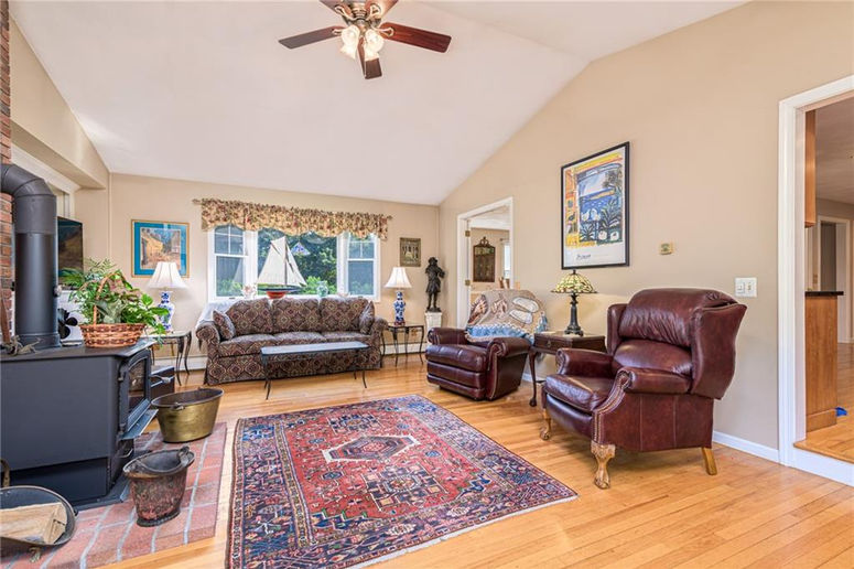 Welcome to 75 Hamilton Allenton, a wonderful property nestled in the heart of North Kingstown and right outside of Wickford. This beautifully maintained 3-bedroom, 2.5-bathroom home is set on a serene, private 2.2 acre lot. Inside discover a spacious floor plan, featuring a cozy living room with a wood-burning stove, hardwood floors, and plenty of natural light. The updated kitchen boasts granite counter tops, stainless steel appliances, and plenty of cabinet space - perfect for entertaining. There is a formal dining room, large office/den, half bath, laundry room, and an additional living room with another wood stove on the main level. Upstairs, the primary bedroom suite offers a peaceful retreat with a walk-in closet and en-suite bathroom. Two additional bedrooms share a full bath upstairs as well. Outside enjoy your own slice of paradise with mature landscaping, private patio, and plenty of space for gardening or gatherings with friends and family. The property includes an attached two-car garage, and a partially finished basement which adds extra storage and living space. Located just minutes from Wickford Village, marinas, and beaches, this home offers easy access to Route 4 and I-95, making it a convenient commute to Providence, Newport, and beyond. Experience the best of country living with modern comforts and a very convenient location!
